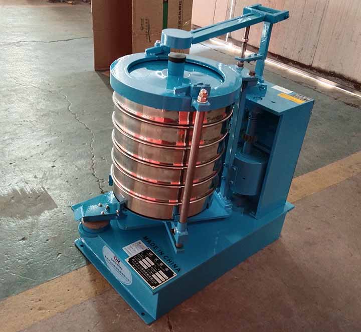 金刚砂拍击筛是用于高硬度、易团聚、易静电的金刚砂进行粒度分析的设备。它通过一边水平转动与一边垂直敲打相结合,把金刚砂按照粗细进行分开。金刚砂的硬度大、棱角尖,用普通筛机容易卡住网眼或者被震碎,导致数据不准,拍击筛能解决这些问题。该机器从16目粗砂到325目细粉都能筛分,它可以用直径200mm或300mm的筛机,一次能够装7层筛网,每层大概能放100到200克样品。它每分钟拍击156次,左右摇摆221次,制造符合国家标准。